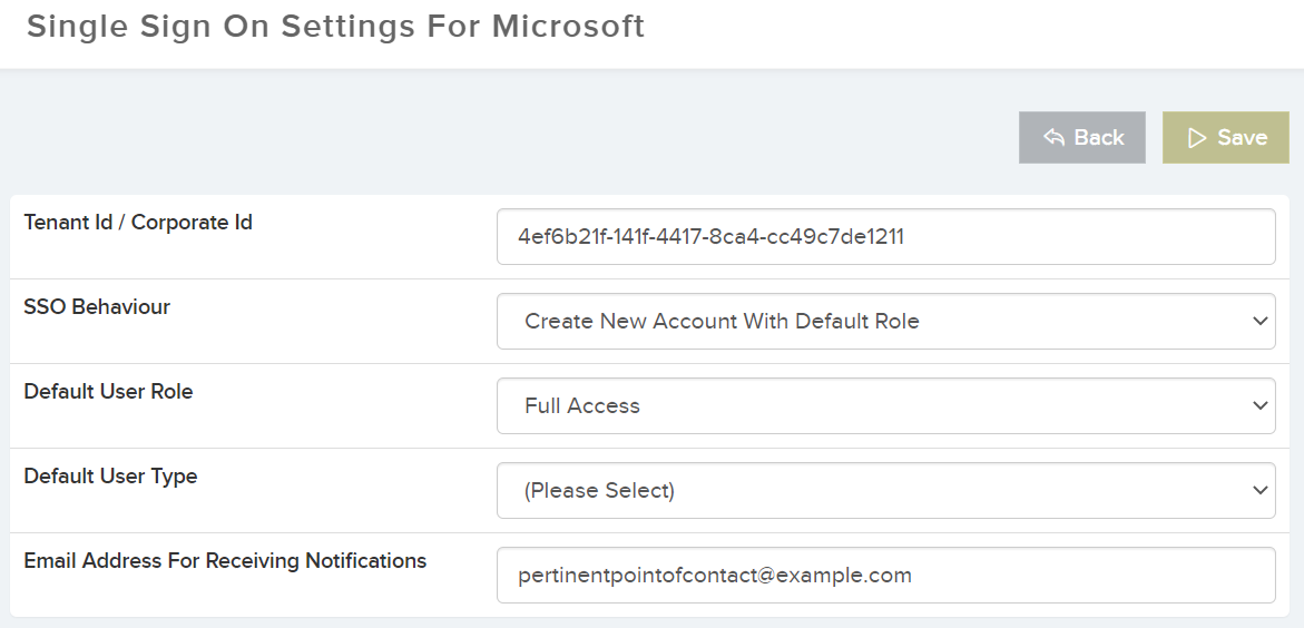 - Email Address For Receiving Notifications – Email address to receive notifications from Microsoft when there are authentication issues.